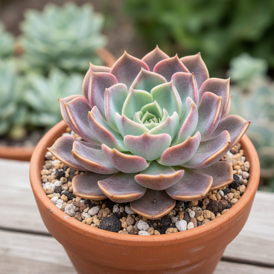 🧬 Köken: Hibrit Echeveria türlerinden biri, özel renk formu ile seçici üretim sonucu oluşmuştur